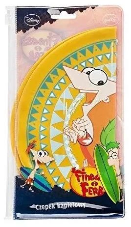 Phineas and Ferb Flying Disc #1 | Flying disc stamped with an art of Phineas and Ferb in beach attires holding surfboards in its blue mosaic cover. | ||