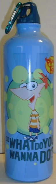 Aluminum Sports Bottle, Blue | Aluminum water bottle with Phineas on one side and Ferb on the other. Read label on bottom for a list of what types of drinks should not be stored. | $10.50 | |