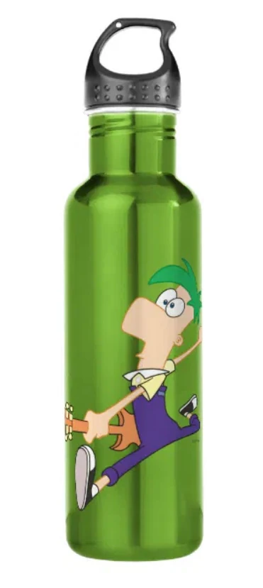 Party Sports Bottle | Water bottle tricked out with Phineas and Ferb rocking out around a logo post. | ||