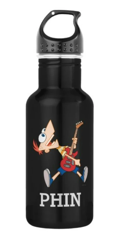 Plastic Water Bottle | Plastic water bottle with an illustration of Phineas and Ferb rocking out. | $5.95 | |