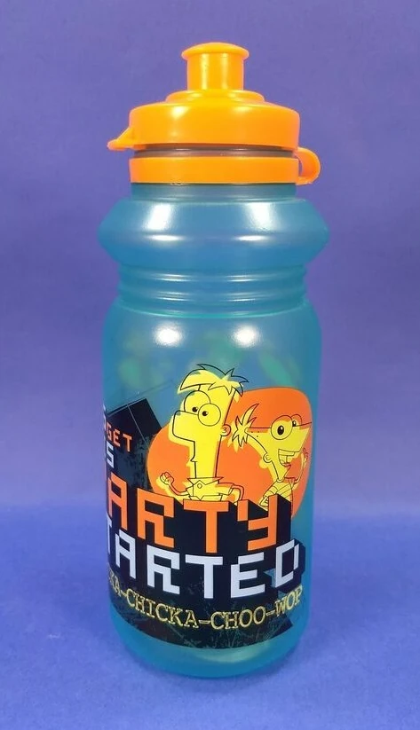 Plastic Sports Bottle | Plastic water bottle with icons of Phineas and Ferb alongside Perry next to the series' logo. | $5.95 | |