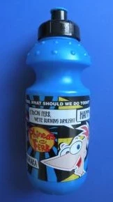 Motto Sports Bottle | Plastic water bottle with a drawing of Phineas and Ferb around the wording "Phineas & Ferb". | ||
