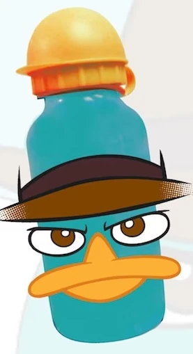 Agent P Water Bottle | Water bottle tricked out with a protruding Agent P look and characteristic colors. |